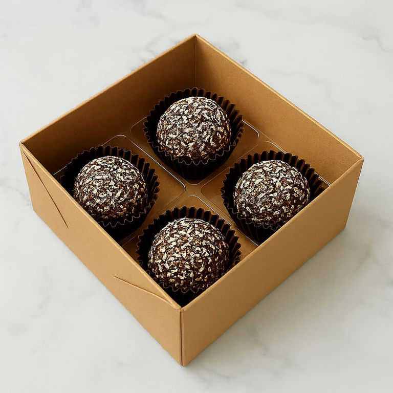 Embalagem em papel kraft ideal para ovo de páscoa em formato coração. Tampa total em acetato, montagem prática e acabamento premium que valoriza o produto artesanal.